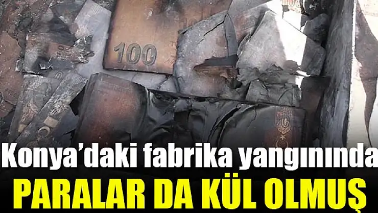 Konya'da dün yanan mobilya fabrikasından geriye, küle dönen enkaz yığını kaldı, çelik kasanın içindeki paraların da yandığı öğrenildi.