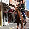 Kent halkının alışık olduğu atlı yolculukta, Yüce'nin uğradığı dükkan ve belediye gibi yerlerin kapısına bağlanan at ilginç görüntü oluşturuyor.