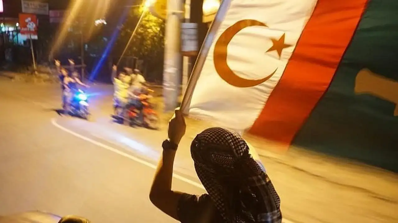 Lanang Ali'nin paylaşımında bayrağın fotoğrafını da paylaştı. Buna göre, yukarıdan aşağıya zeminde yeşil, beyaz ve kırmızı 3 renkten oluşan bayrağın ortasında sarı hilal ve yıldız, altında ise soldan sağa kılıç resmi bulunuyor.
