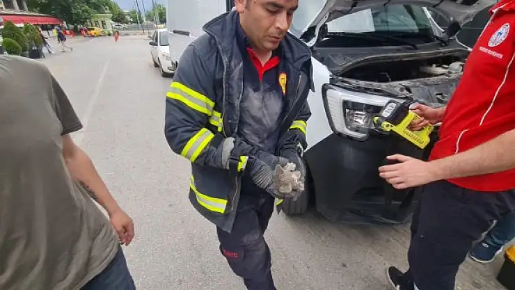 KOCAELİ'nin İzmit ilçesinde park halindeki minibüsün motor kısmına giren yavru kedi, itfaiye ekiplerinin 2 saatlik çalışması ile çıkarıldı.