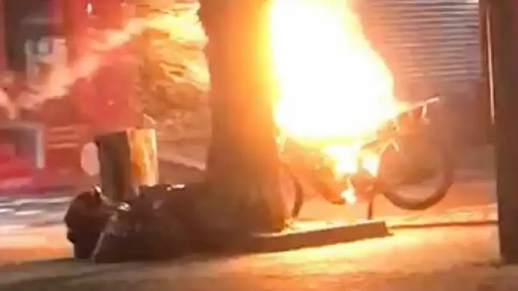 Sakarya'nın Karasu ilçesinde park halindeki motosiklet alev alev yandı. Yangın çevredeki vatandaşların müdahalesi ile söndürülürken, motosiklet kullanılamaz hale geldi.
