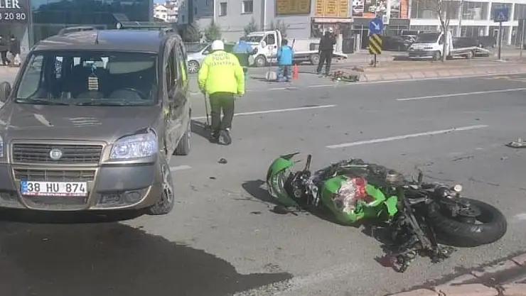 Kaza, saat 14.30 sıralarında Kocasinan ilçesi Yakut Mahallesi Bekir Yıldız Bulvarı'nda meydana geldi. Necmetdin Çelebi, idaresindeki 38 AGP 963 plakalı motosiklet ile Enes Kaan Talay yönetimindeki 38 HU 874 plakalı hafif ticari araca çarptı. Kazada iki aracın sürücüsü yaralandı. Çevredekilerin ihbarıyla olay yerine polis ve sağlık ekipleri sevk edildi. Olay yerine gelen sağlık ekipleri, yaralıları hastanelere kaldırdı. Motosiklet sürücüsü Çelebi'nin sağlık durumunun ağır olduğu öğrenilirken, polis kazayla ilgili inceleme başlattı.