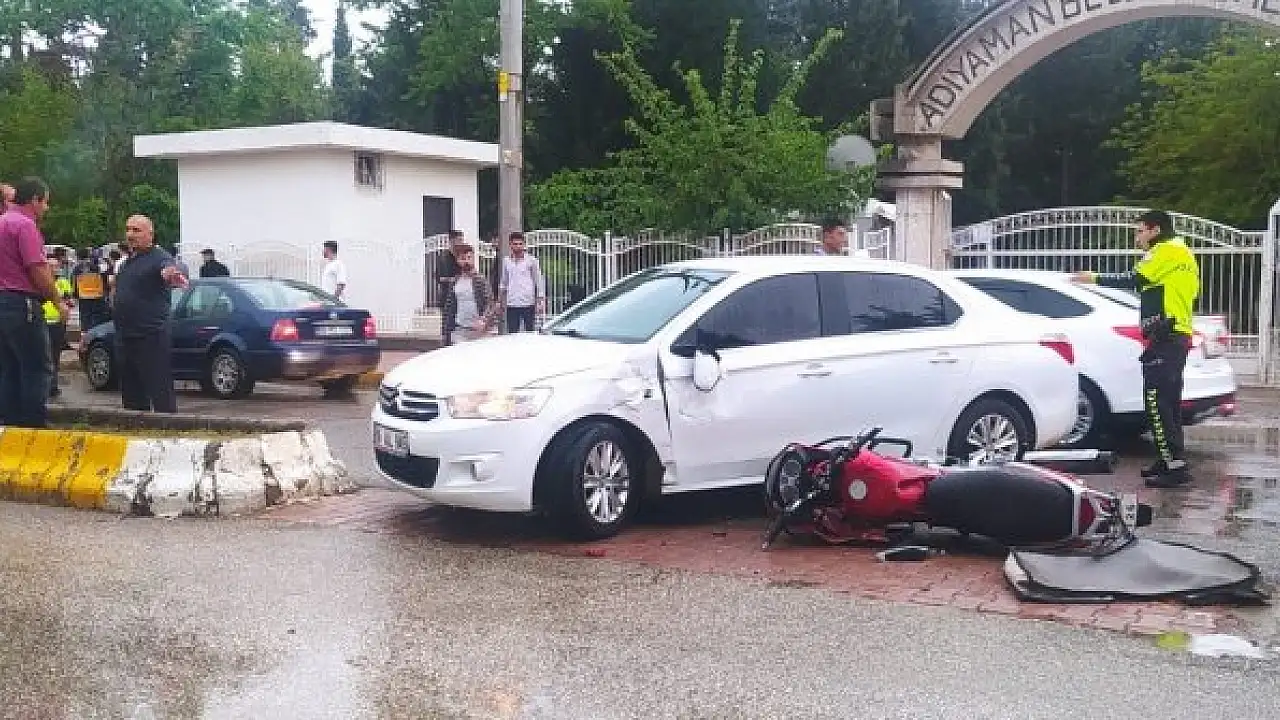 Edinilen bilgilere göre, Müslüm Yavuz idaresindeki 06 AAL 954 plakalı otomobil ile Murat Erdemir idaresindeki 02 HC 126 plakalı motosiklet, eski Adıyaman Belediye Mezarlığı yakınlarında çarpıştı. Meydana gelen kazada motosiklet sürücüsü Murat Erdemir ile motosiklette bulunan Mustafa Başkara yaralandı. Her iki yaralı, olay yerine gelen sağlık ekiplerince yapılan ilk müdahalenin ardından Adıyaman Eğitim ve Araştırma Hastanesi'ne kaldırıldı.