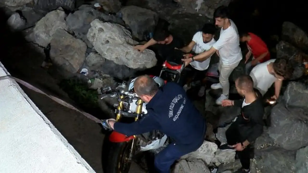 FATİH'te gece saatlerinde Yenikapı sahilinde seyir halinde bulunan motosiklet, kayalıklara uçtu.