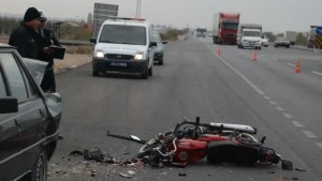 Ahmet K. (20) yönetimindeki plakasız motosiklet, Afyonkarahisar-Konya karayolu Ilgın Meslek Yüksek Okulu önünde, Ali Rıza K. (51) idaresindeki 42 UH 870 plakalı otomobile park halindeyken arkadan çarptı.
