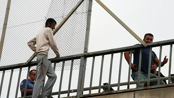 ANTALYA'da, motosikleti çalınan Gürkan D. (36), üst geçitte intihara kalkıştı. 45 dakika boyunca demir parmaklıklara tutunan Gürkan D., motosiklet sözü verilmesiyle atlamaktan vazgeçti.