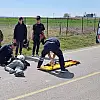 Edirne'nin İpsala ilçesinde, akaryakıt tankerine çarpan motosikletin kasksız sürücü N.F., ağır yaralandı.
