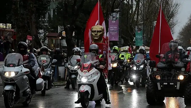 Silivri'de de terminal yanında bir araya gelen motosiklet tutkunları, konvoy oluşturarak Atatürk Meydanı'nda gitti.