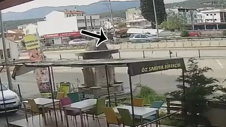 Balıkesir'in Edremit ilçesinde motosikletin araca arkadan çarptığı kaza saniye saniye güvenlik kamerasına yansıdı.