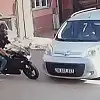 Motosikletin hafif ticari araca çarptığı kaza güvenlik kamerasında