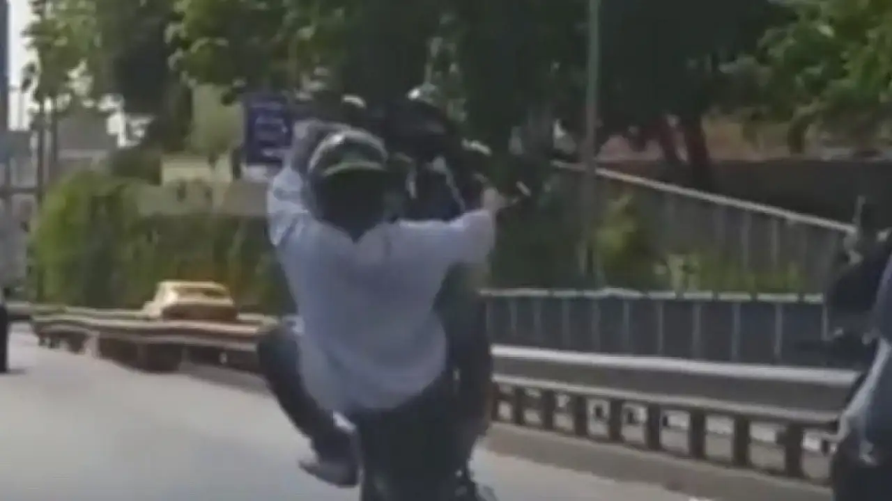 ŞİŞLİ'de bir motosiklet sürücüsü hem kendisini hemde trafiktekileri tehlikeye attı. Motosikletin ön tekerini kaldırarak bir süre ilerleyen sürücü, aynı yönde seyir halindeki bir otomobilde bulunanlar tarafından cep telefonuyla görüntülendi.