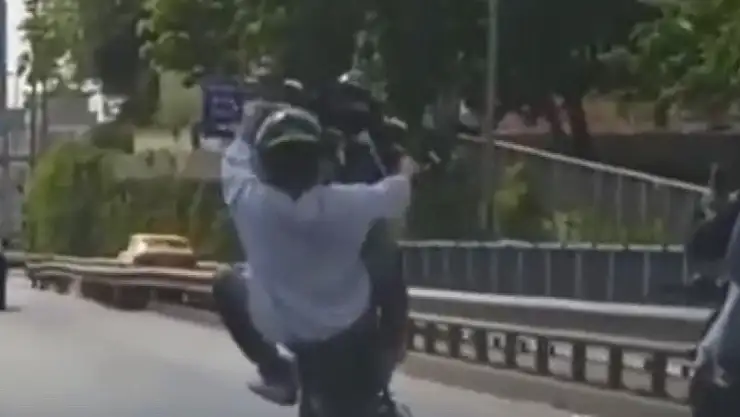 Olay, dün öğle saatlerinde Şişli D-100 Karayolu, Çağlayan mevkiinde meydana geldi. Edirne istikametinde seyir halindeki otomobilde bulunanlar, önlerinde ilerleyen motosiklet sürücüsünün ön tekerini kaldırarak gittiği anları cep telefonu ile saniye saniye görüntüledi. Görüntülerde, otomobilde bulunan adamın, "İnene kadar çek" dediği, görüntüleri alan kadınının ise "Yakınlaştırdım ama gözüküyor mu? Bilmiyorum" dediği görülüyor.