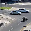 DİYARBAKIR'da adliye binası önündeki motosikletli yunus timleri, yakıtı bitince yolda kalan hafif ticari aracın sürücüsüne yardım etti. Ekipler aracı 200 metre iterek, akaryakıt istasyonuna getirdi. O anlar ise cep telefonu kamerası ile görüntülendi.