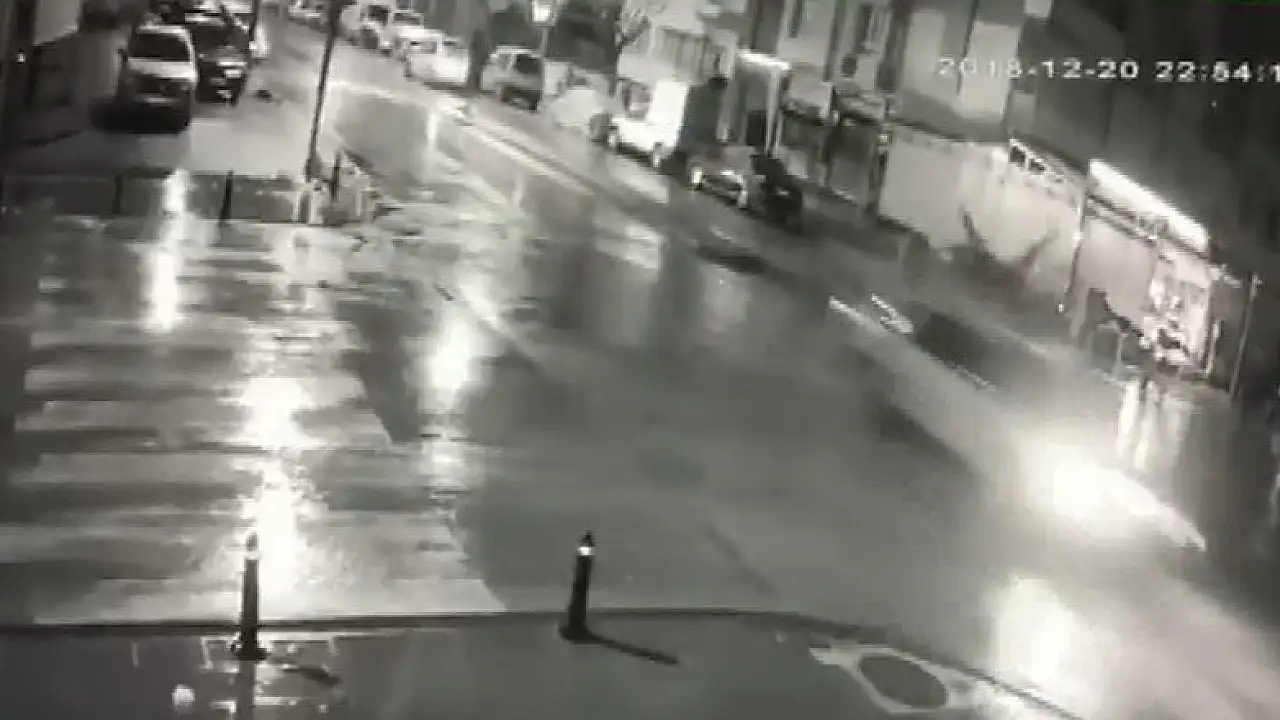 KARAMAN'da plakası belirlenemeyen otomobil, kavşakta Mustafa Yıldız'ın (21) kullandığı motosiklete çarpıp kaçtı. Bir iş yerinin güvenlik kameralarına yansıyan görüntülerde Mustafa Yıldız'ın, çarpanın şiddetiyle metrelerce havaya fırladığı görülüyor.