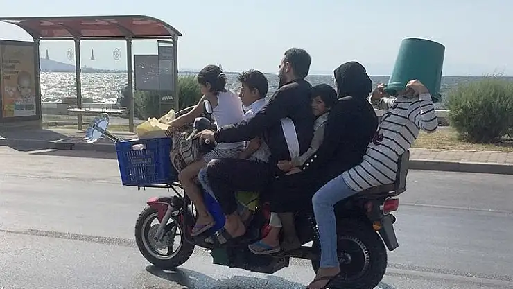 Motosiklette 6 kişilik tehlikeli yolculuk