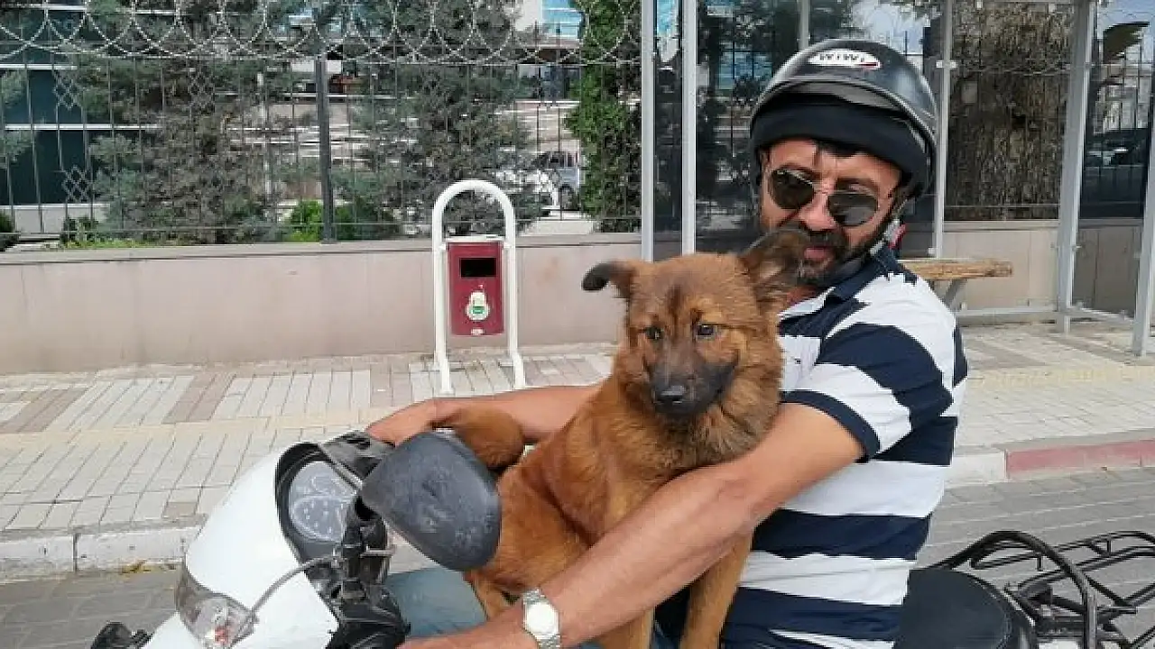 İnegöl ilçesi Kemalpaşa Mahallesi Adnan Menderes Bulvarı'nda motosikletiyle yolculuk yapan Mustafa Eryılmaz, "Kontes" ismini verdiği 6 aylık köpeğini de kucağına oturttu. Motosiklet hareket edince patilerini gidona koyan köpek, yolculuğuna devam etti.