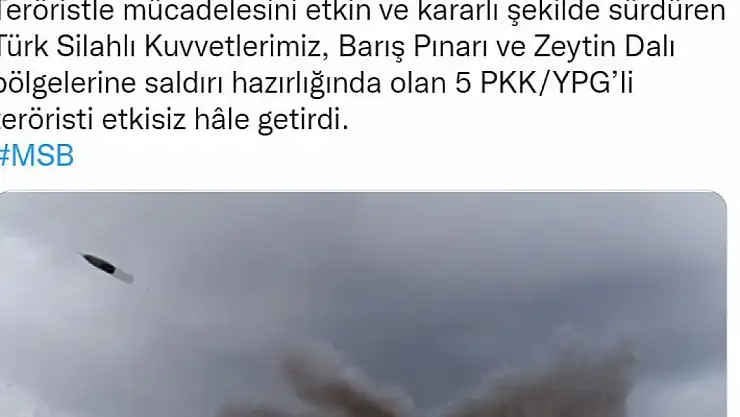 MSB: 5 terörist etkisiz hale getirildi