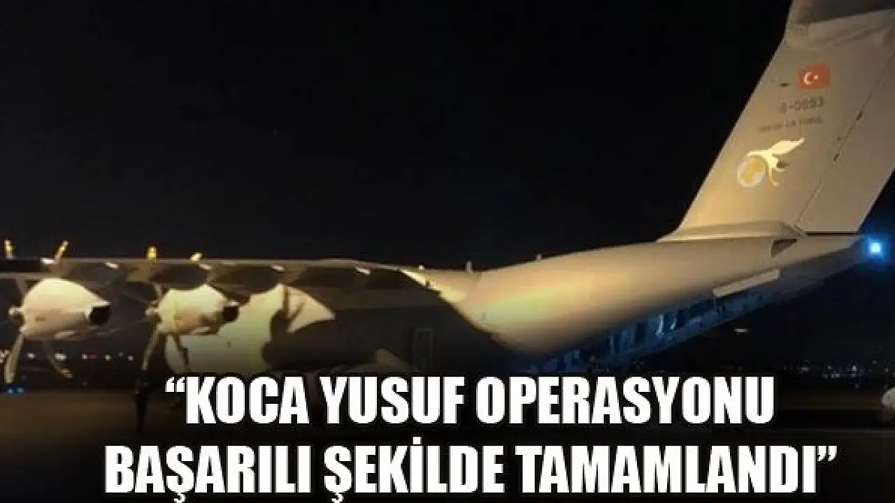 MSB duyurdu... "Koca Yusuf Operasyonu” başarılı şekilde tamamlandı. Türk ve dost ülke vatandaşlarını Çin’in Vuhan kentinden alarak Ankara’ya getiren uçağımız yaklaşık 32 saatlik tahliye operasyonunu tamamlayarak Ankara’daki Etimesgut Havaalanına indi.