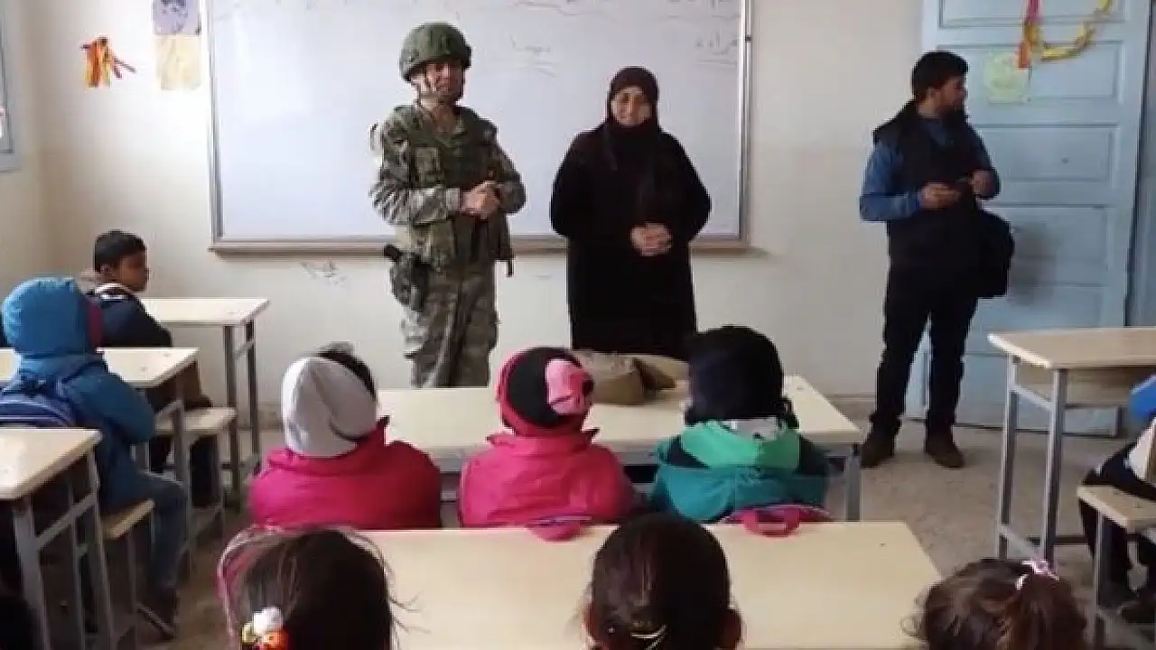 Görüntülerde, Türkiye sayesinde eğitime yeniden başladıklarını dile getiren Suriyeli başka bir öğrenci ise "Türk askeri olmasaydı okullar açılmazdı. Türkiye'ye teşekkür ederiz. Öğretmenleri ve Türkiye'yi çok seviyoruz." ifadesini kullanıyor.