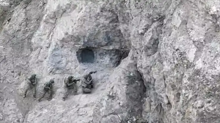 Fotoğrafta, operasyon kapsamında terör örgütüne ait mağara ve sığınaklara Mehmetçik tarafından arama tarama yapıldığı anlar yer aldı.