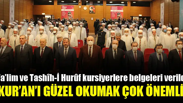 Konya İl Müftülüğü tarafından Ta'lim ve Tashîh-i Hurûf Kursları'nın birinci dönem kapanışı ve kursiyerlere belge takdim töreni düzenlendi. Kur'an- ı Kerim'i güzel okumanın çok önemli olduğunu ifade eden Müftü Öge, 'Kur'an'ı Kerim'e hizmet Rabbimizin kelamına hizmettir' diye konuştu.