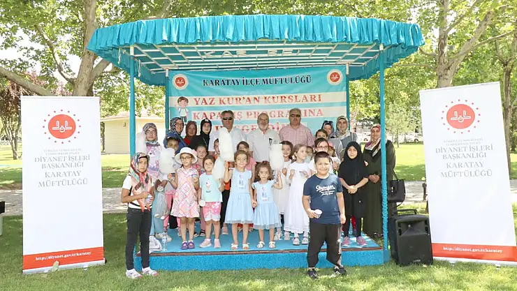 Diyanet İşleri Başkanlığı Yaygın Din Eğitimi Daire Başkanlığı tarafından planlanan, ülke genelinde İl ve İlçe Müftülükleri tarafından da organize edilen “Yaz Kur’an Kursları Kapanış Programı” öğrenci ve ailelerin katılımıyla gerçekleşti. Karatay Belediyesi Adalet Parkında saat 10.00’da başlayan etkinliğe, Karatay İlçe Müftüsü Musa İmamoğlu, Şube Müdürleri Cahit Nazlı ve Şakir Eğri ile öğrenci ve aileleri katıldı. Kur’an-ı Kerim tilaveti ve İstiklal Marşı ile başlayan programda açılış konuşmasını Karatay İlçe Müftüsü Musa İmamoğlu yaptı. Yaz Kur’an kurslarında gerçekleşen eğitim-öğretim faaliyetlerine değinen ve Kur'an Kurslarında eğitim alan öğrencilere başarılar dileyen İmamoğlu, kapanış programının hazırlanmasında emeği geçen Kur’an kursu öğreticilerine, Karatay Belediyesi'ne, daire personeli ile öğrenci ve ailelerine teşekkür etti. Öğrenciler tarafından şiir, ilahi dinletileri ve semazen gösterileri ile devam eden program, Karatay Belediyesi tarafından dağıtılan pamuk şekeri ve dondurma ikramı ile sona erdi. Kapanış programının ardından Kur’an kursu öğreticilerinin refakatinde öğrenciler ve aileleri gün boyu devam eden çeşitli etkinliklerle eğlendi.