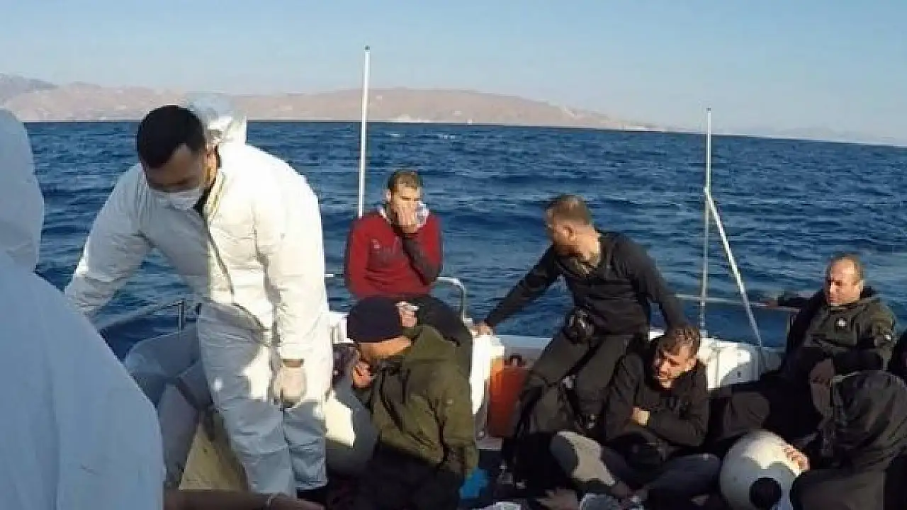 Muğla'nın Datça ilçesi açıklarında, lastik botlarda yakalanan 31 düzensiz göçmen karaya çıkarıldı.