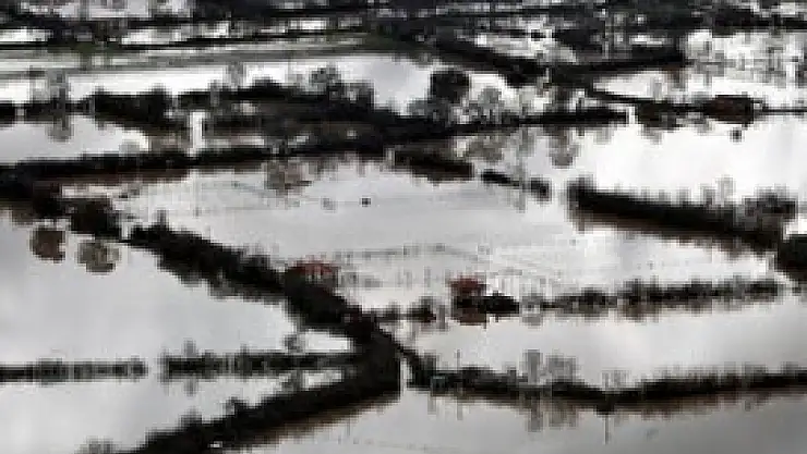 Su altında kalan tarım arazileri, yeni oluşmuş bir göl görüntüsü oluşturdu. Görüntüyü ilginç bulan vatandaşlar da alanda fotoğraf çektirdi.