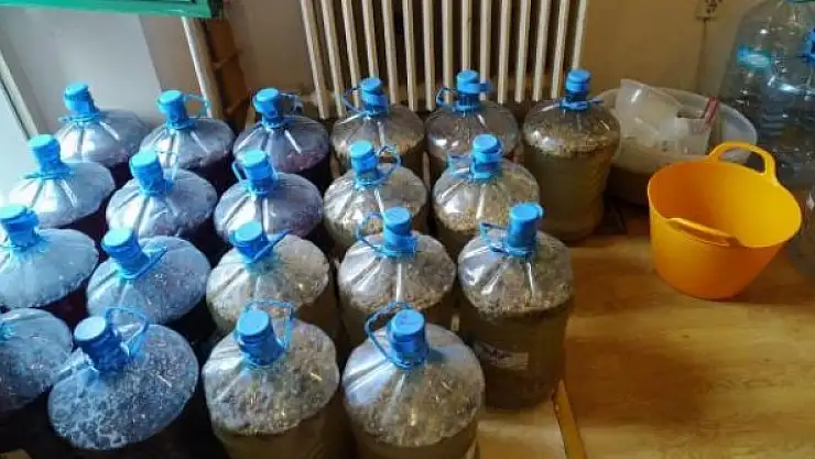 Evde yapılan aramada, 600 litre el yapımı şarap, 265 litre el yapımı rakı, 175 litre el yapımı bira ve 90 litre etil alkol ile alkol yapımında kullanılan malzemeler bulundu.