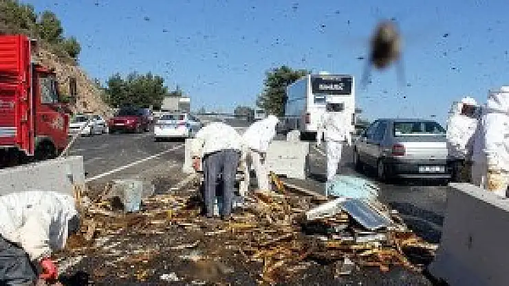 Muğla'nın Akyaka Mahallesi'nde arı kovanı yüklü kamyonun devrilmesi sonucu 2 kişi yaralanırken, etrafa saçılan arıların sokması nedeniyle ise 18 kişi, hastanelerde tedavi altına alındı.