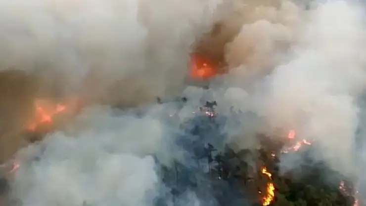MUĞLA'nın Marmaris ilçesinde çıkan orman yangını, rüzgarın etkisiyle kısa sürede geniş alana yayıldı. Ekipler, havadan ve karadan söndürme çalışmalarını sürdürüyor.