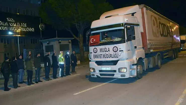 13 Şubat itibariyle, Muğla'dan deprem bölgesinde 503 araç ve 2 bin 657 personel ve gönüllünün görev aldığı, ayrıca il genelinde toplanan battaniye, kuru gıda, bakliyat, giyim, ısıtıcı, su, hijyen malzemesi, yatak, yorgan, çadır, jeneratör, seyyar wc/banyo, konteyner, yakacak ve uyku tulumunun bulunduğu toplam 600 tır yardım malzemesi bölgeye karayoluyla, sivil gemilerle, askeri gemilerle ve askeri uçaklarla sevk edildiği belirtildi.