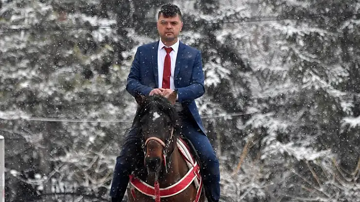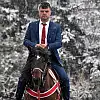 Muhtar adayı, oyunu atı 'Cemşit' ile kullanmaya geldi