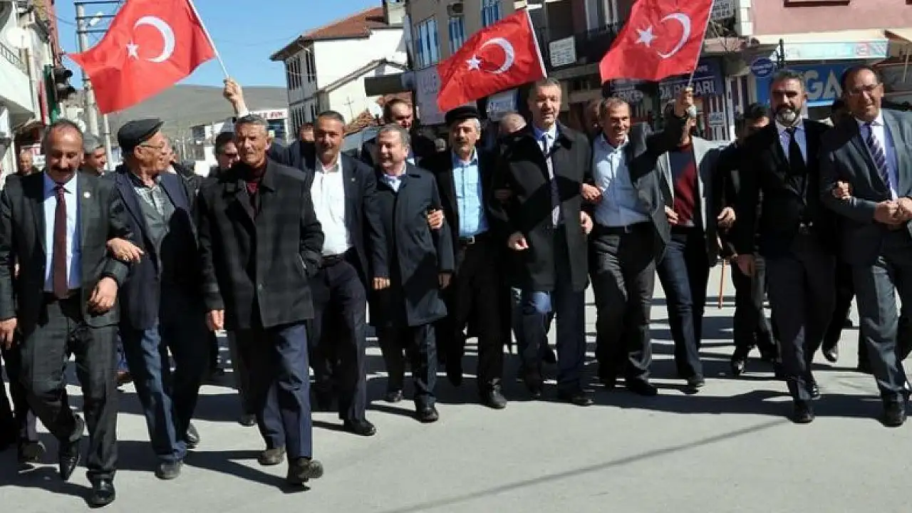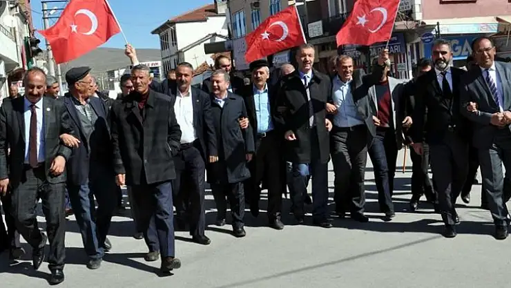 Kırıkkale'nin Keskin ilçesinde 55 köy ve 6 mahalle muhtarı, halk oylamasında 'evet' oyu için destek yürüyüşü düzenledi.