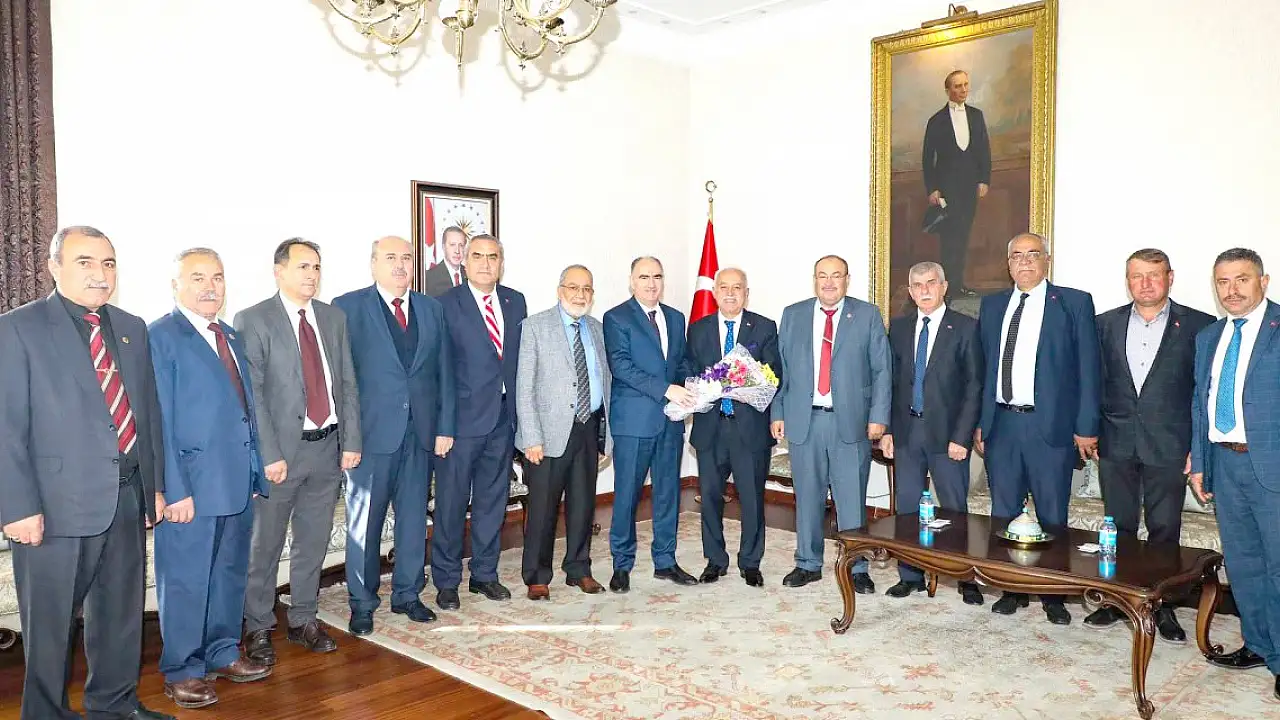 19 Ekim Muhtarlar Günü kutlama programları kapsamında Konya Muhtarlar Derneği Başkan V. Celalettin Doğan, Karatay Muhtarlar Derneği Başkanı Ali Eken, Meram Muhtarlar Derneği Başkanı Ahmet Taşdemir, Selçuklu Muhtarlar Derneği Başkanı Mustafa Avcıoğlu ve mahalle muhtarları Vali Vahdettin Özkan'ı makamında ziyaret ettiler.