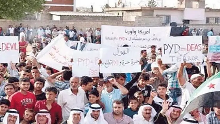 Münbiç'te terör örgütü PKK/PYD'nin ilçedeki gençleri zorla silah altına alma kararı kentteki halkın büyük tepkisine yol açmıştı.
