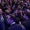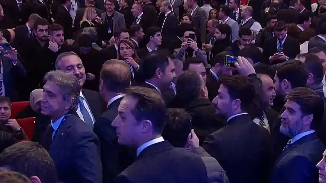 Kurum, salona girdiğinde davetliler ve siyasi isimler tarafından yoğun ilgiyle karşılandı.