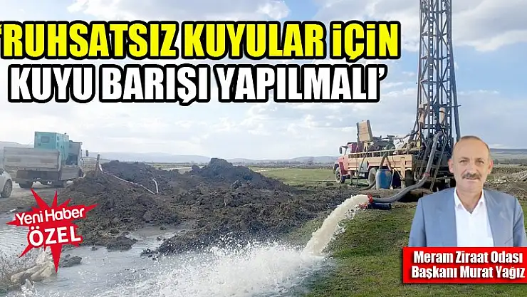 Konya Havzası’nda 120 bin kayıt dışı sulama kuyusu bulunduğunu belirten Meram Ziraat Odası Başkanı Murat Yağız, “Devletimiz; imar barışı, varlık barışı, vergi barışı gibi uygulamalarla önemli düzenlemeler yaptı. Aynı uygulama, ‘Kuyu Barışı’ başlığıyla ruhsatsız kuyular için de yapılmalı. Böylelikle hem vahşi sulamanın önüne geçilir hem de çiftçimiz devlet desteklerinden faydalanabilir” dedi