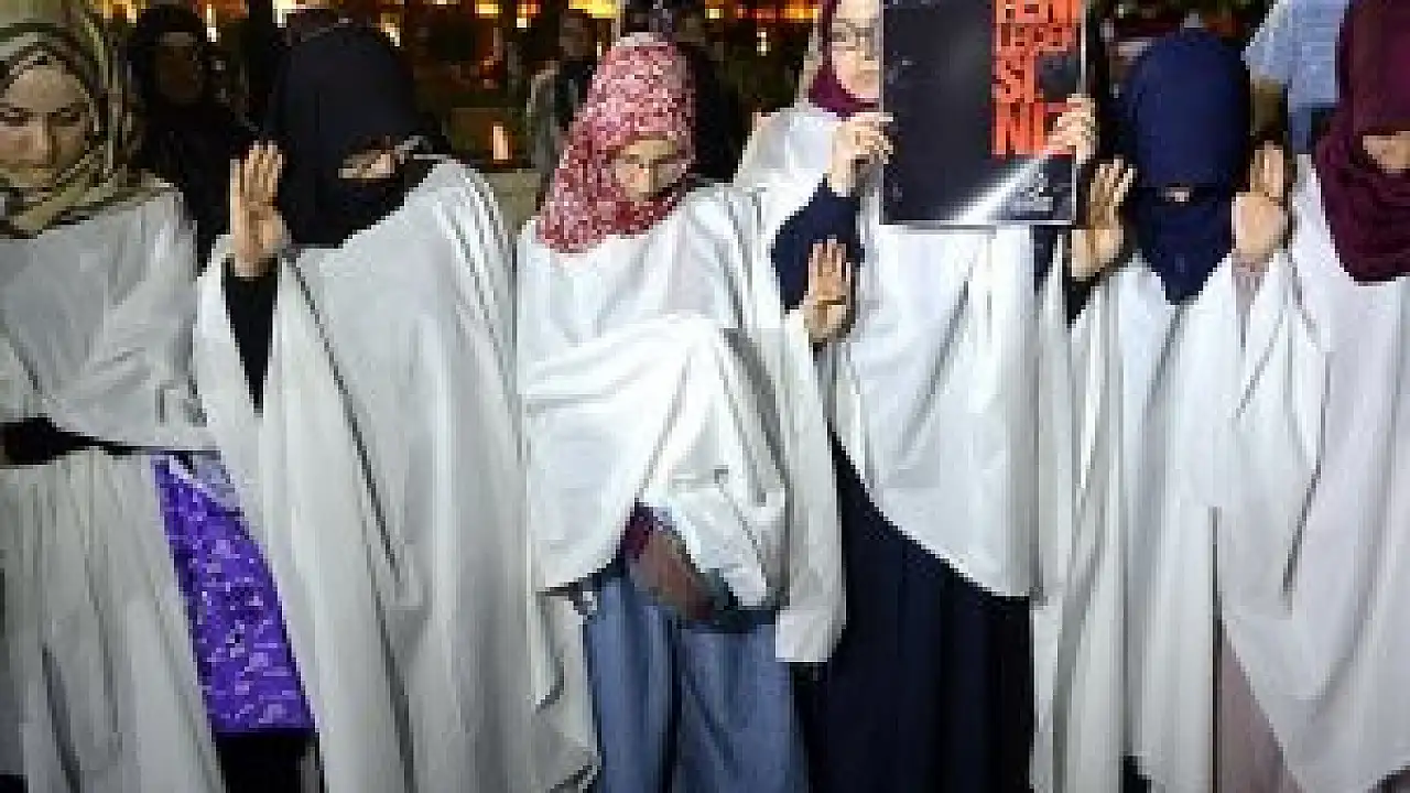 Kefen giyen gruptakiler, "Yaşayan şehitlere selam olsun" ve "Kardeşlerin cellatların elinde, ayağa kalk Türkiye" yazılı pankartlar taşıyarak, Saraçhane Parkı'na yürüdü.
