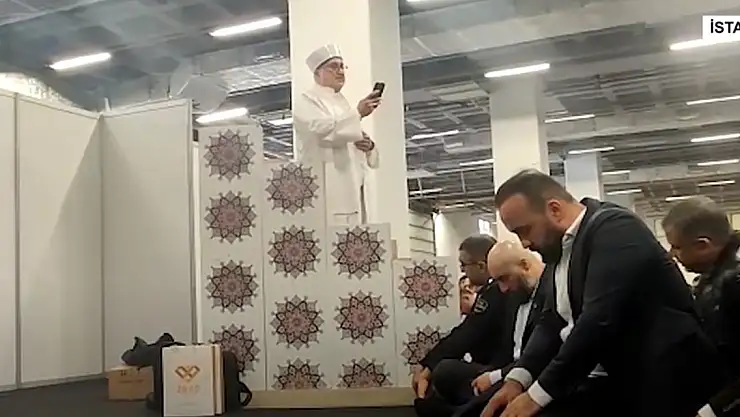 Dünyanın dört bir yanından katılımcı ve ziyaretçinin bulunduğu fuar alanındaki Cuma namazında imam, İngilizce, Arapça ve Türkçe hutbe okudu.