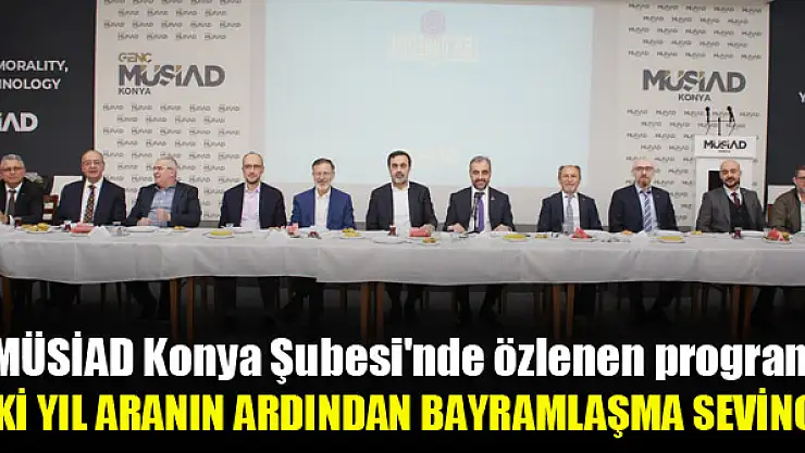 Müstakil Sanayici ve İş Adamları Derneği (MÜSİAD) Konya Şubesi, Ramazan Bayramı'nın birinci gününde bayramlaşma programında bir araya geldi. Pandemi sebebiyle iki yıldır yapılamayan ve bu sene MÜSİAD ve Genç MÜSİAD Konya Şube üyelerinin yoğun katılımlarıyla gerçekleştirilen programda, katılımcılar bayramlaşma sevincini yaşadı.