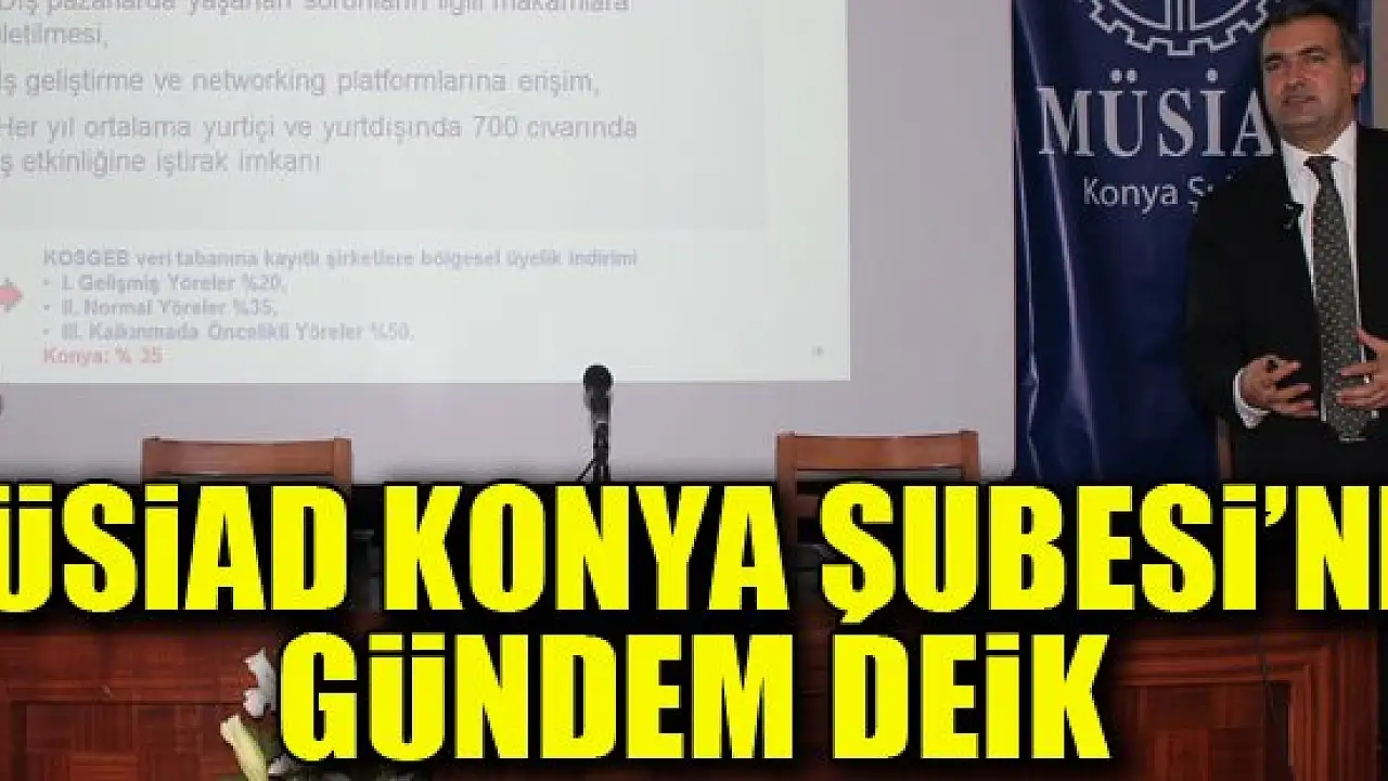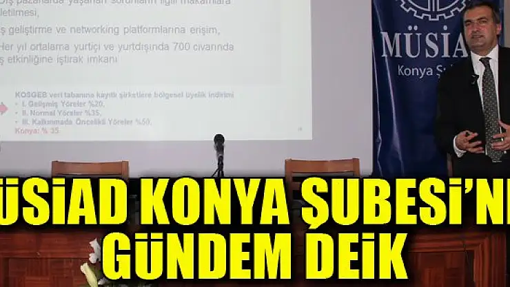DEİK Genel Sekreteri Mustafa Mente’nin ardından söz alan MÜSİAD Konya Şube Başkanı Dr. Lütfi Şimşek de, “MÜSİAD Konya Şubesi olarak ülkemizin 2023 ihracat hedeflerine giden yolda DEİK’in yaptığı çalışmaları çok önemsiyoruz. MÜSİAD Konya Şubesi olarak ihracat yapan firmalarımızın ihracat rakamlarını artırmaları için bu kurumun bir fırsat olduğunu düşünüyoruz. Buradan ihracat yapan, yapmayı planlayan üyelerimizi ve Konyalı sanayicilerimizi DEİK’e üye olmaya davet ediyoruz” şeklinde konuştu.