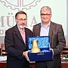 Toplantının sonunda MÜSİAD Konya Şubesi Başkan Vekili Mehmet Ali Korkmaz günün anısına Stratejik Düşünce Enstitüsü Başkanı Prof. Dr. Birol Akgün ve Star Gazetesi Yazarı Ekonomist Cemil Ertem’e hediye takdim etti.