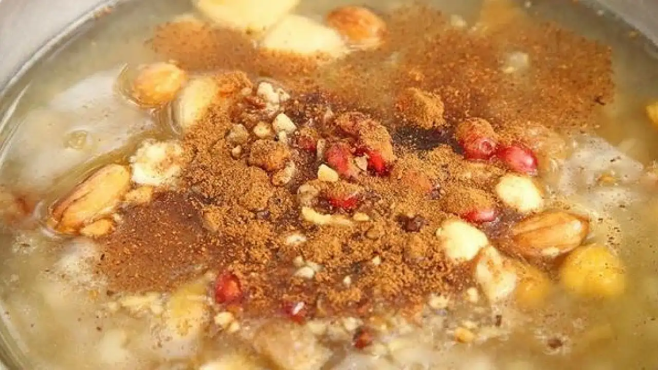 Takvo jelo spravlja se u znak sjećanja na poslanika Nuha čija lađa je na današnji dan pristala na kopno nakon poplave sa, prema predajama, parom svih živih vrsta na Zemlji.