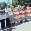 Müslümanlar BM önünde protesto yapıyor
