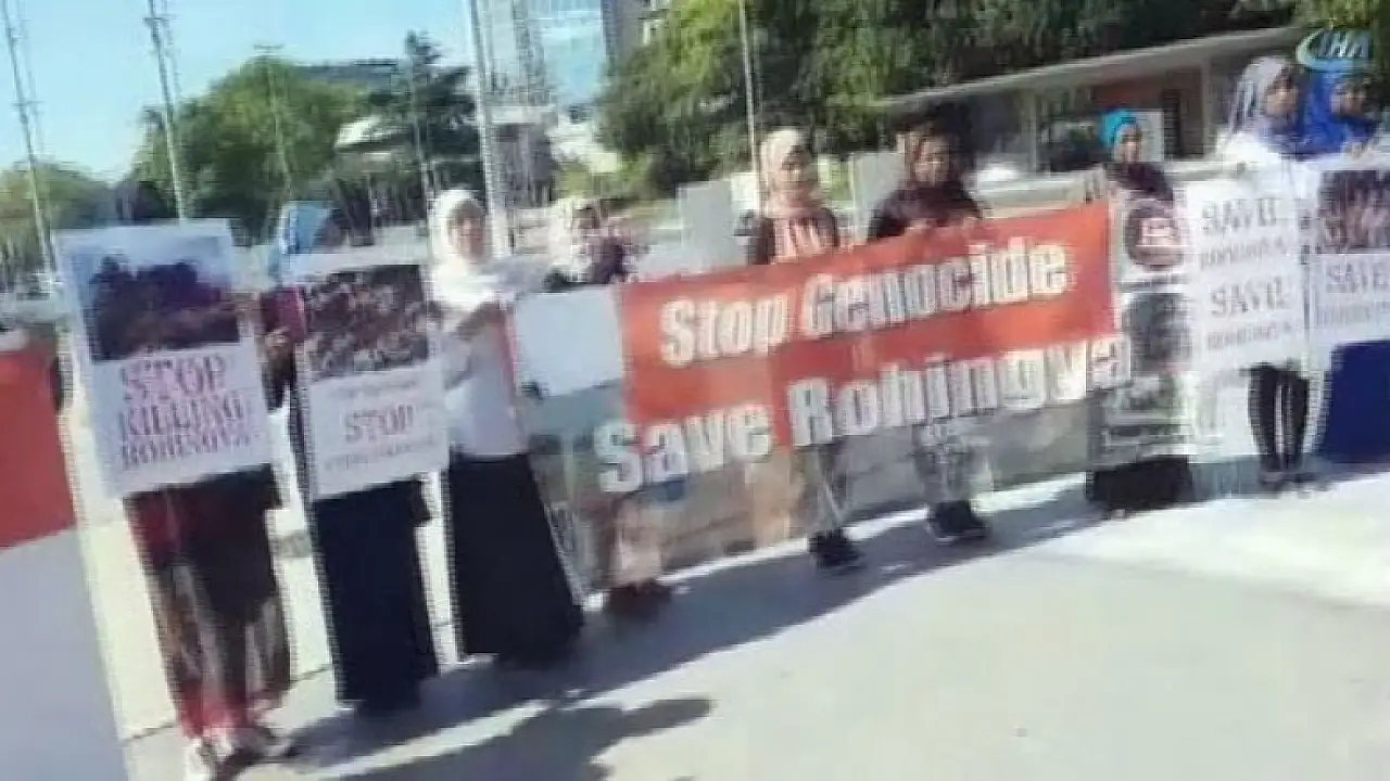 İsviçre’nin Cenevre kentindeki BM binası önünde toplanan Müslümanlar, Myanmar’daki Müslümanlara yapılan zulmün durdurulması ve oradaki Müslümanların şiddet eylemlerinden kurtarılması için protesto gösterisi yapıyor. Müslümanlar ellerindeki, “soykırımı durdur, Rohingyalıları kurtar” yazılı pankartlarıyla Arakanlı Müslümanlara destek oluyor.