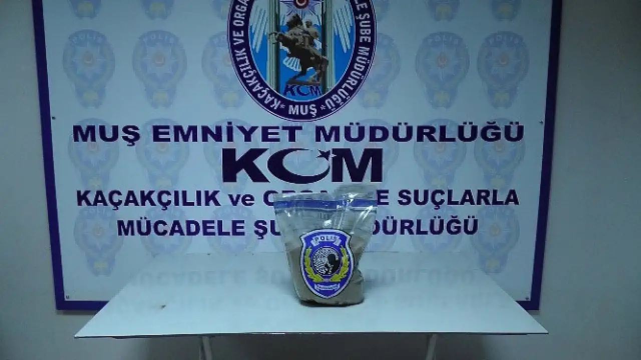 Konuyla ilgili Emniyet Müdürlüğü'nden yapılan yazılı açıklamada, Kaçakçılık ve Organize Suçlarla Mücadele (KOM) Şube Müdürlüğü ekipleri tarafından il genelinde uyuşturucu madde satan, nakleden suç şebekeleri ve şahıslara yönelik olarak yapılan çalışmalar neticesinde, bir araçta arama yapıldığı belirtildi. Açıklamada, "Yapılan aramada 1 kilo 450 gram toz esrar maddesi ele geçirilirken, E.E. isimli şahıs ile yaşı küçük M.İ.Ş. isimli şahıs gözaltına alındı. Polisteki sorgularının ardından adli makamlara çıkartılan zanlılar tutuklanarak Muş E Tipi Kapalı Cezaevi'ne konuldu" denildi.