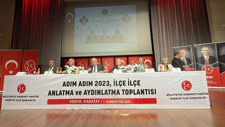 Milliyetçi Hareket Partisi Karatay İlçe Teşkilatı tarafından, Mevlana Kültür Merkezi'nde 'Adım Adım 2023 İlçe İlçe Anlatma ve Aydınlatma' programı düzenlendi. Programda konuşan MHP Genel Başkan Yardımcısı Mustafa Kalaycı, 'Bilinmelidir ki Türkiye, kararlı yürüyüşünden asla vazgeçmeyecektir. Cumhur İttifakı her türlü kirli oyunu milletimizle birlikte bozacaktır.' dedi.