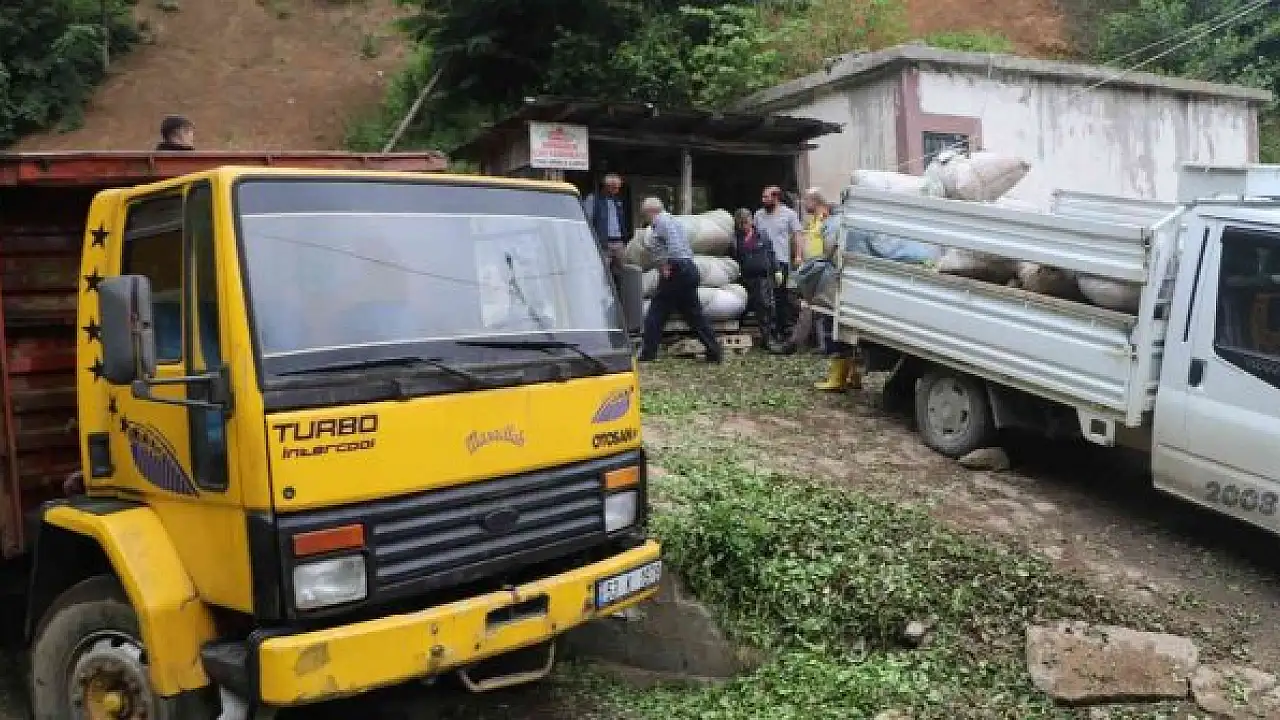 Rize'de geçtiğimiz yıl Temmuz ayında yaşanan sel felaketi nedeniyle Yukarı Ambarlık köyünde zarar gördüğü için yıkılan çay alım yerinin yerine yenisinin yapılmayınca müstahsil çayını alım yerine dökmek yerine direk kamyona döküyor.