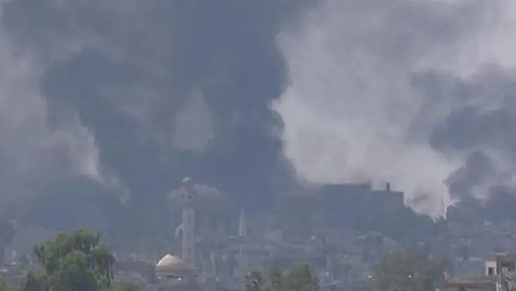 Irakı'ın Musul kentini DEAŞ'tan kurtarma operasyonu sürerken Rudaw kanalının canlı yayınladığı görüntülerde şehrin kuzeydoğusundaki El-Nuri Büyük Camii ve Habda minaresinin bulunduğu bölümün yandığı görülüyor.